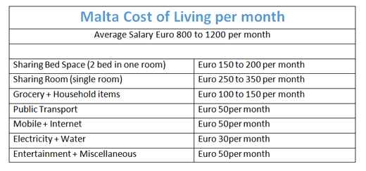 Malta is a very affordable country to live in.Cost of living in Malta will vary depending on where& how you want to live and your lifestyle.